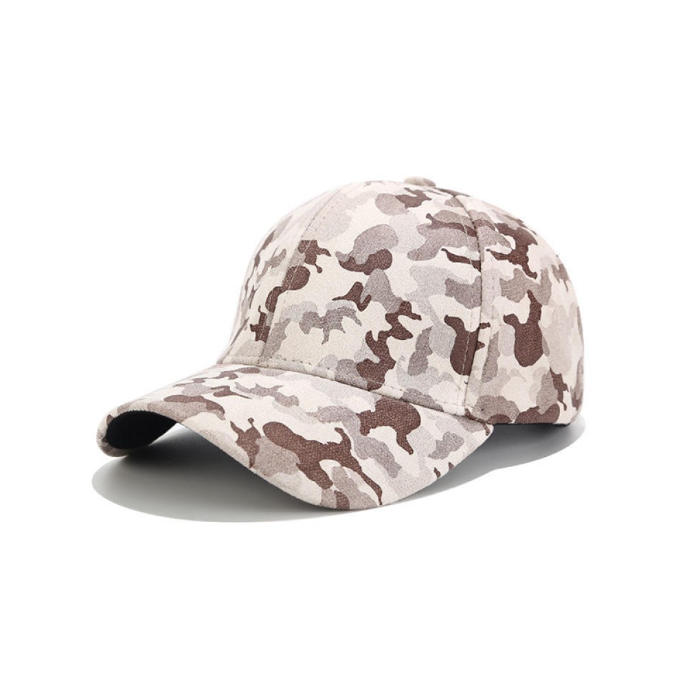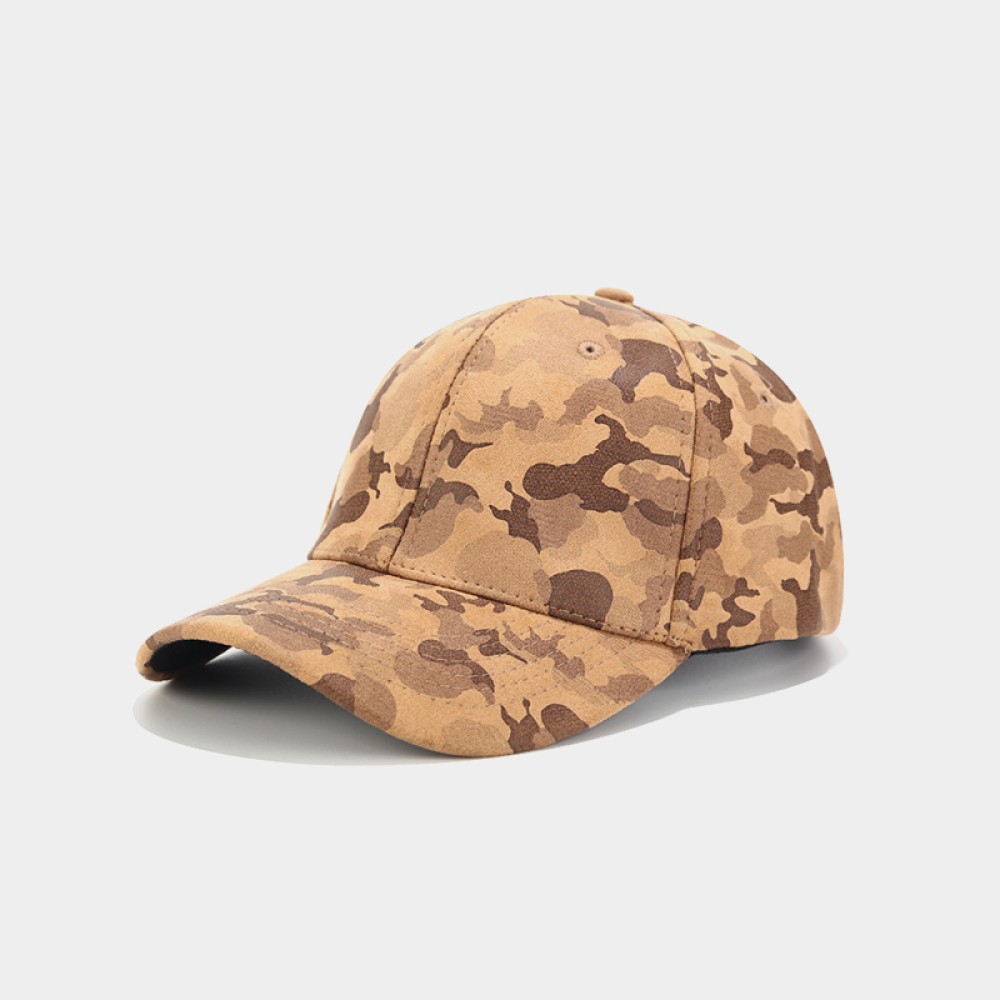 This baseball cap features a camouflage print design, combining individuality and trendiness, suitable for everyday casual wear and outdoor activities. The suede material is soft and delicate to the touch, offering a premium feel and adding a unique stylish touch to your overall look. The front brim effectively blocks sunlight, providing a comfortable wearing experience while maintaining the cap's structured and natural shape. The cap features an adjustable strap, allowing for flexible adjustment to different head sizes for a secure and comfortable fit. The overall design is lightweight and durable, making it a versatile and practical casual cap.