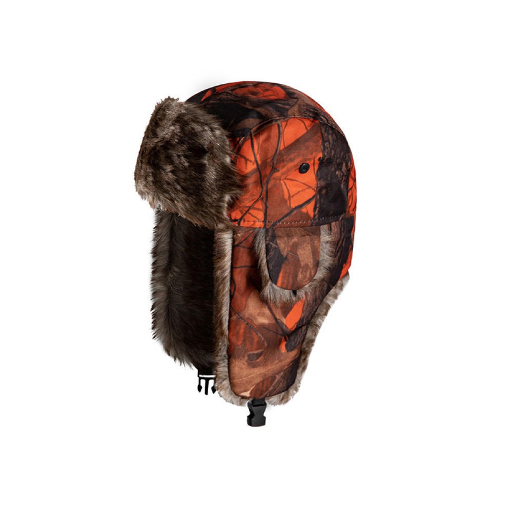 This plush hat features a camouflage print design, combining fashion and outdoor style. It includes ear flaps for effective protection against cold winds. The hat is lined with soft, skin-friendly plush material, providing warmth and comfort, making it ideal for autumn and winter outdoor activities or everyday wear. The hat's design fits snugly to the head, offering excellent comfort and cold protection, keeping you warm in cold weather.