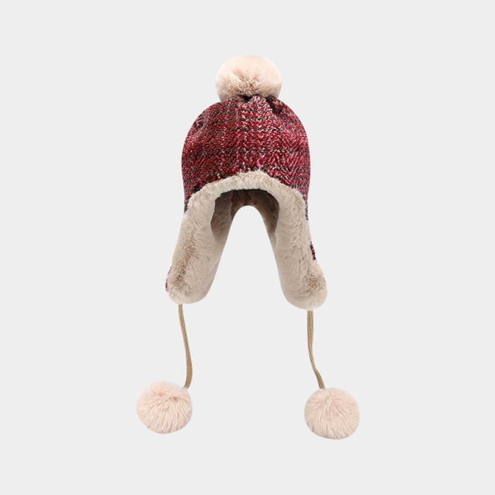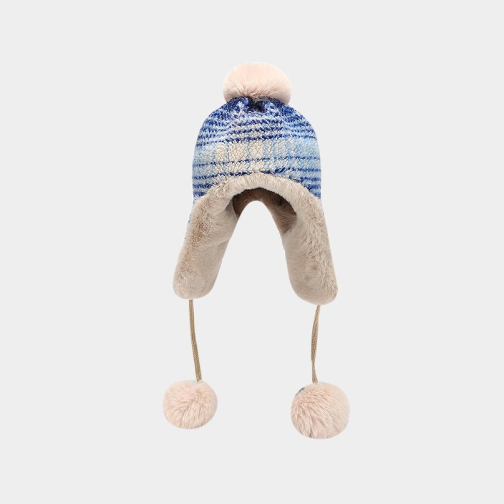 This plush hat is designed with a focus on both warmth and cuteness, featuring a soft and appealing overall design. The hat is lined with plush material, providing a delicate and skin-friendly feel. It effectively retains heat when worn, offering a comfortable and snug fit. The earflap design conforms to the contours of the head and ears, effectively protecting against cold winds and enhancing warmth and practicality during winter. A pom-pom adorns the top, adding a playful touch and visual interest, making the hat both practical and stylish. The thickened structure provides excellent insulation, making it suitable for everyday wear, outdoor activities, or casual outfits in autumn and winter, combining functionality and aesthetics.
