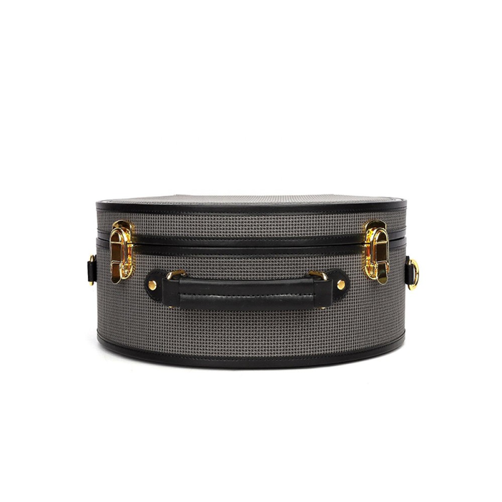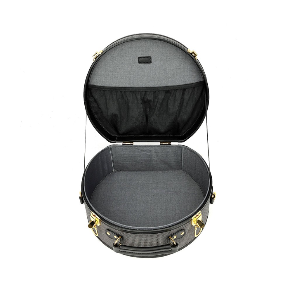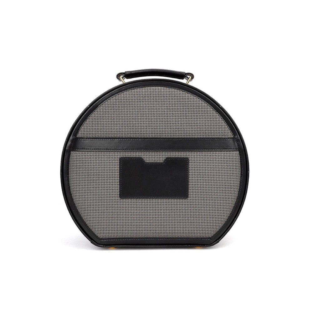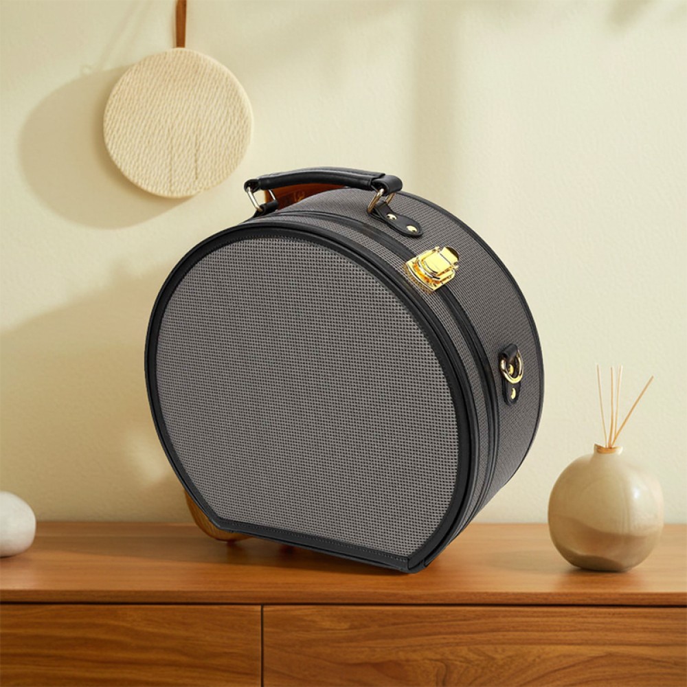 This hat box features a classic plaid design, offering a vintage yet stylish look that combines practicality and aesthetic appeal. The box has a sturdy structure and excellent shock protection, effectively reducing external impact during travel or storage, helping the hat maintain its original shape and preventing deformation. The top features a leather handle for a comfortable and secure grip, enhancing the overall quality and user experience. The secure lock closure ensures the box remains closed during transport, providing greater security.