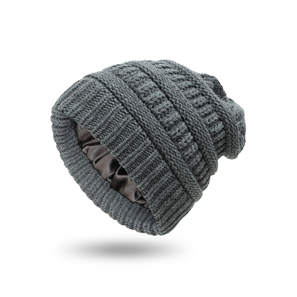 This knitted hat features a simple knit design, offering a clean and streamlined look suitable for various autumn and winter outfits. The highly elastic knit construction naturally conforms to different head shapes, providing a secure yet comfortable fit. The smooth satin lining reduces friction with the hair, enhancing wearing comfort while also providing warmth and a touch of luxury. The finely woven, soft knit effectively retains heat, offering warm protection for your head in cold weather.